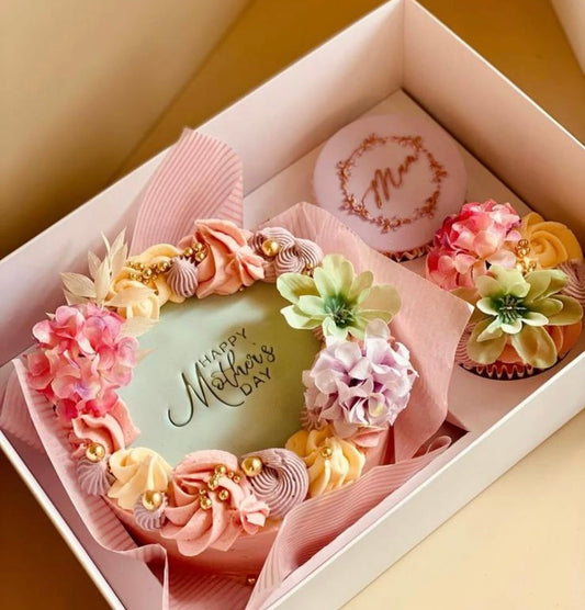 Luxury Personalised Flower Bouquet Balloons Bento Cakes & Cupcakes Gift Set