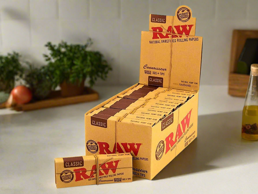 Raw Papers Connoisseur Single Wide Size + Tips (Pack of 24)